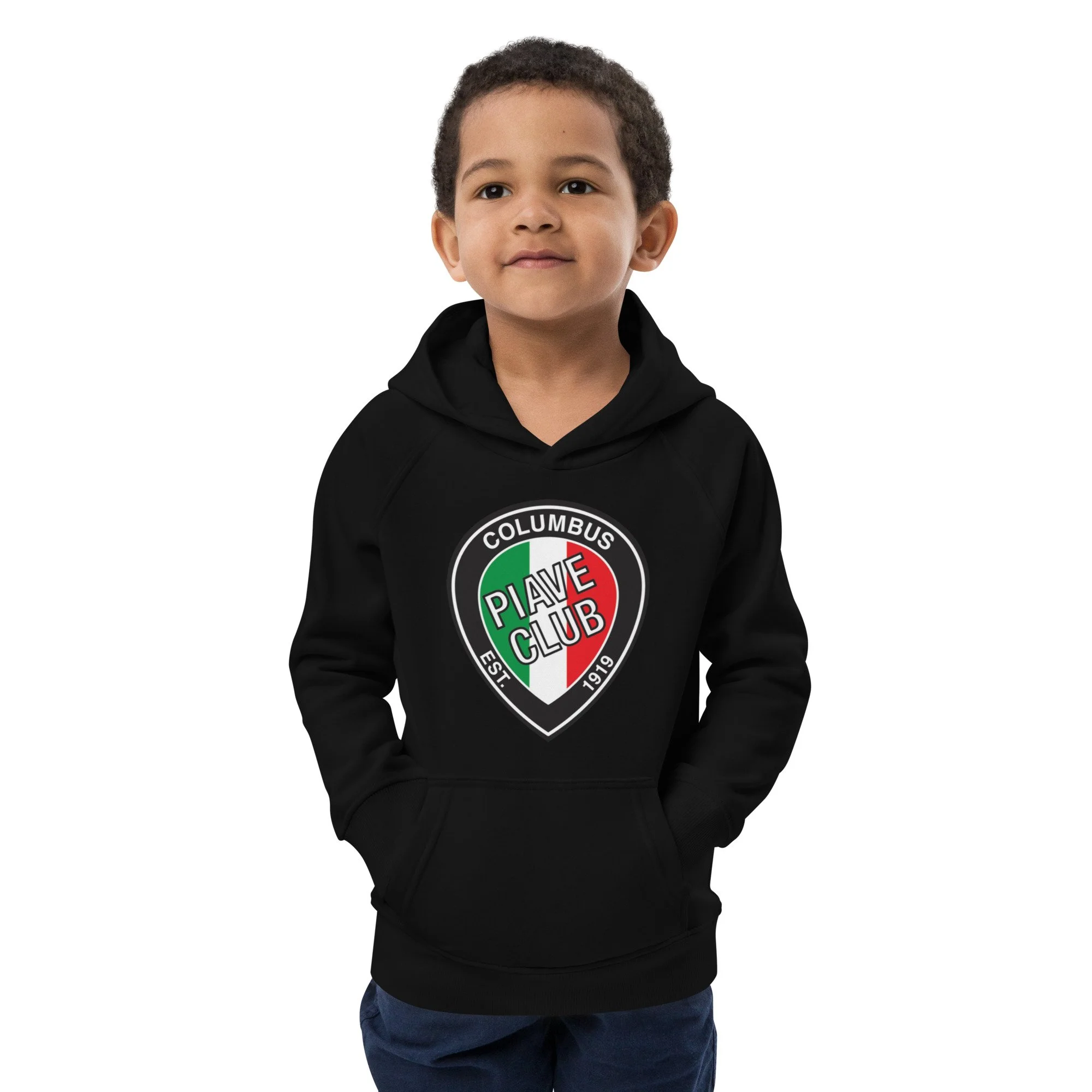 Looking for a comfy hoodie for your little one? This premium quality kids eco hoodie has a front pouch pocket, ribbed cuffs, and a lined hood for additional warmth. It's snug and soft to the touch. What's more, the hoodie is made from organic cotton and recycled polyester, making it a more earth-friendly fashion choice!